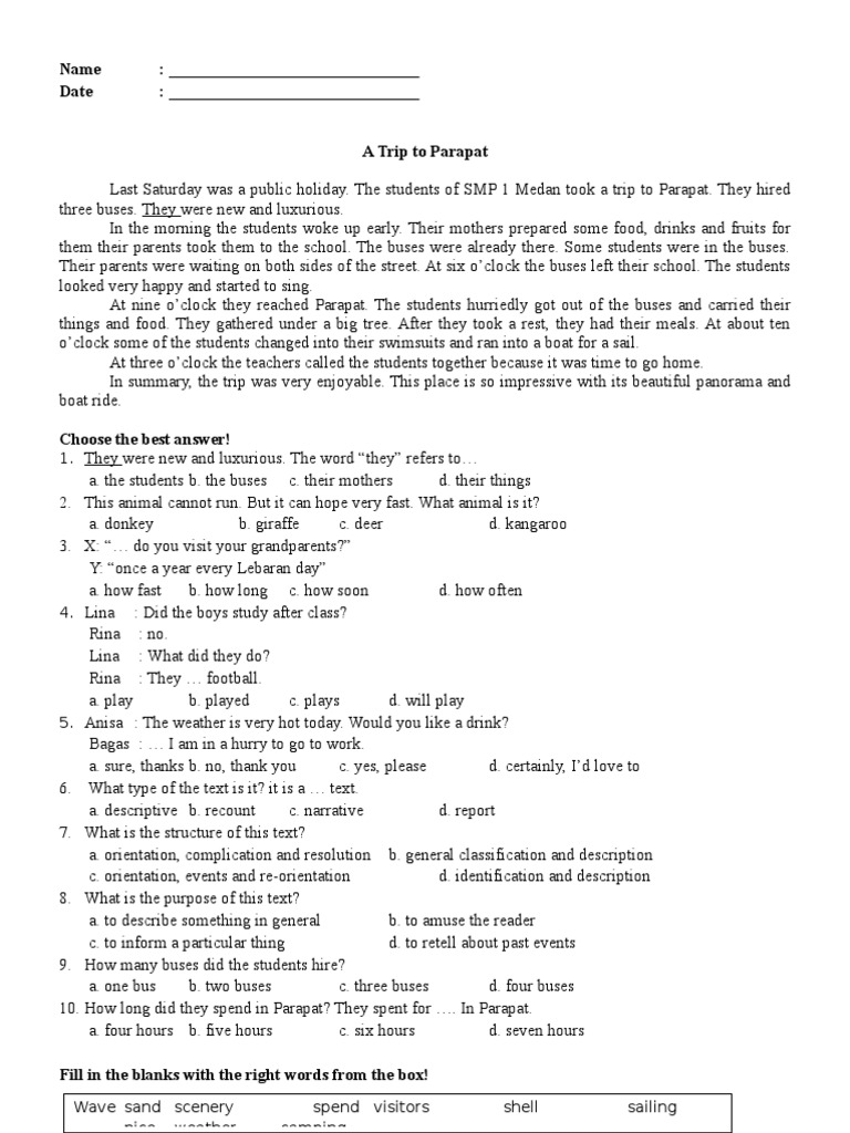 Contoh Soal Ujian Nasional Unbk Sma Recount Text from www.englishcafe.co.id We did not find results for: Check spelling or type a new query. Maybe you would like to learn more about one of these? Contoh soal recount text essay.